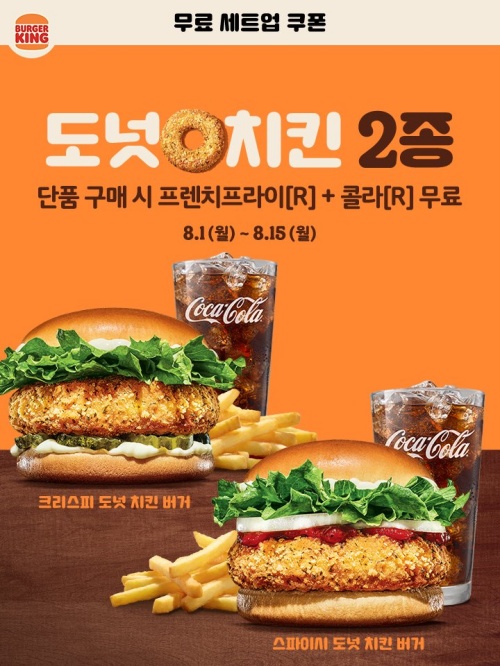 크리스피 도넛 치킨버거, 스파이시 도넛 치킨버거는 출시 이후로 줄곧 무료 세트업 쿠폰을 받아서 이용할 수 있었습니다. 이럴거면 그냥 가격을 낮춰 판매하는게 낫지 않나? 그런 생각드시죠?